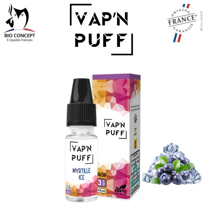 E-liquide Myrtille ice de la marque Vap'n puff pour cigarette électronique.